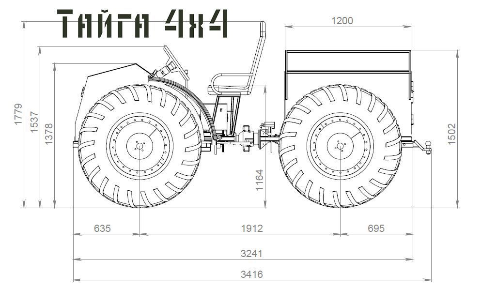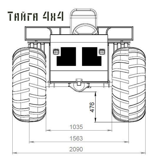 Размеры Вездехода Тайга 4х4 с Кразовскими колесами ВИ-3